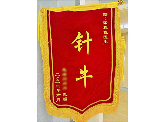 走進欒程程的辦公室,墻上掛滿了患者送來的錦旗。在眾多錦旗中,一面寫有“針牛”二字的錦旗尤為引人注意。