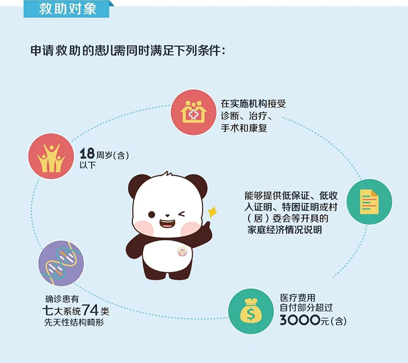 先天性結(jié)構(gòu)畸形救助項(xiàng)目是由國家衛(wèi)健委婦幼司及中國出生缺陷干預(yù)救助基金會(huì)聯(lián)合開展的中央專項(xiàng)彩票公益金資助項(xiàng)目,以減輕經(jīng)濟(jì)困難家庭醫(yī)療負(fù)擔(dān)、促進(jìn)疾病診療、減少出生缺陷疾病所致兒童殘疾、提升人口素質(zhì)。
