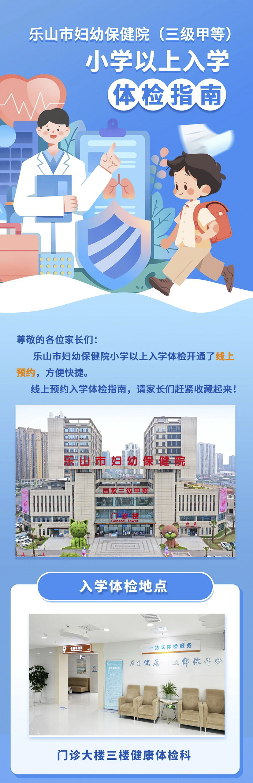 【“醫(yī)”心“醫(yī)”意】樂山市婦幼保健院(三級甲等)小學以上入學體檢指南