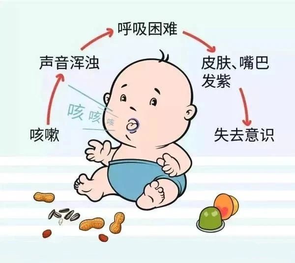 異物吸入氣管,導(dǎo)致呼吸道梗阻。易誤吸的常見物品有: