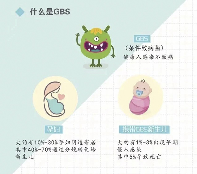 盡管在大多數情況下GBS不對成年人構成威脅,但它可以在孕婦分娩過程中垂直傳播給新生兒,造成嚴重的新生兒感染,如:敗血癥、腦膜炎和肺炎等,嚴重時可能導致死亡。