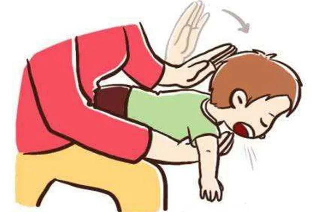 將寶寶臉朝下,身體倚靠在大人膝蓋上,一只手拖住寶寶下巴,另一只手掌根用力在寶寶肩胛骨中間拍5次。