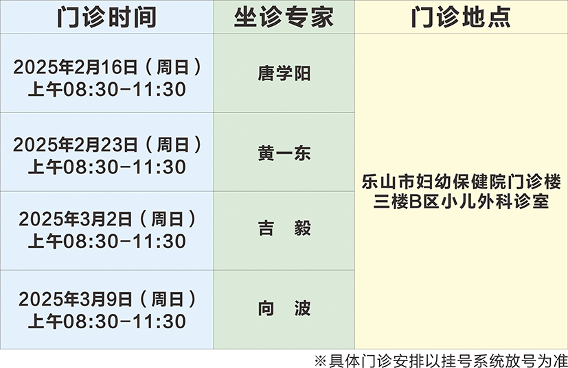 現(xiàn)在,華西小兒外科專家團隊已入駐樂山市婦幼保健院!每周日,華西小兒外科專家輪流坐診,家長們再也不用擔心來回奔波,小朋友們也可以不出樂山就能享受到華西頂尖專家的診療服務。