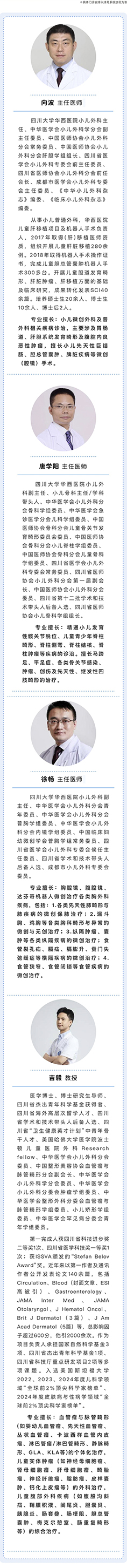 診療服務(wù)涵蓋新生兒外科、小兒普通外科、小兒泌尿外科、小兒骨科、小兒胸外科、小兒腫瘤外科,無論是常見病多發(fā)病,還是疑難病例罕見病,華西專家團隊都能為孩子們提供全方位、一站式的健康守護。
