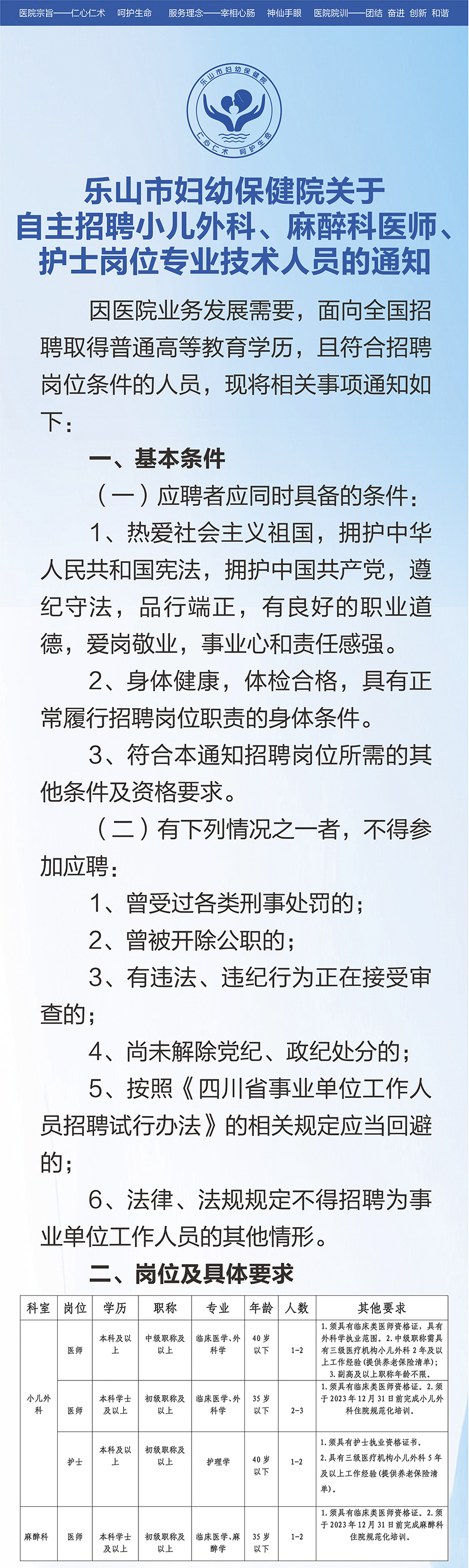 附件1:《樂山市婦幼保健院自主招聘工作人員信息表》