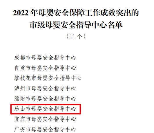 喜訊!樂(lè)山市母嬰安全指導(dǎo)中心獲得省級(jí)通報(bào)表?yè)P(yáng)