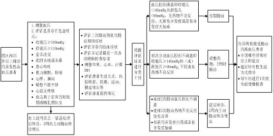 (1)測量血壓并評估是否存在危急情況,如出現(xiàn)收縮壓≥180mmHg和(或)舒張壓≥110mmHg;意識改變、劇烈頭痛或頭暈、惡心嘔吐、視力模糊、眼痛、心悸、胸悶、喘憋不能平臥及處于妊娠期或哺乳期同時血壓高于正常等危急情況之一,或存在不能處理的其他疾病時,須在處理后緊急轉(zhuǎn)診。對于緊急轉(zhuǎn)診者,鄉(xiāng)鎮(zhèn)衛(wèi)生院、村衛(wèi)生室、社區(qū)衛(wèi)生服務(wù)中心(站)應(yīng)在2周內(nèi)主動隨訪轉(zhuǎn)診情況。