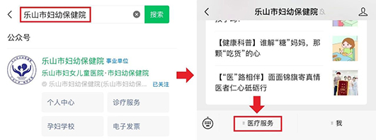 二、搜索“樂山市婦幼保健院”,點擊“醫(yī)療服務”。