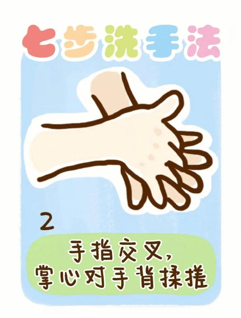 現(xiàn)在,一只手的手心去搓另一只手的手背,特別是那些手指縫隙里的地方,要仔細(xì)搓哦。然后,換另一只手來做同樣的動(dòng)作。這樣,我們的手背和指縫都能洗得干干凈凈。