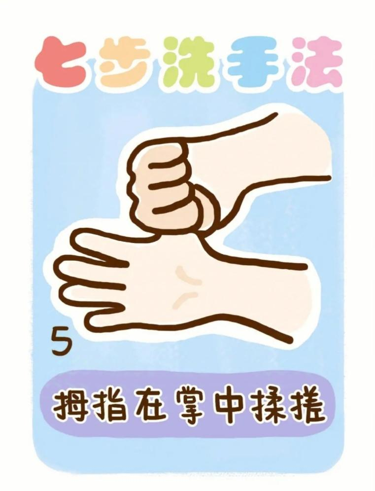 大拇指是我們手上容易藏污納垢的地方。所以,一只手要緊緊握住另一只手的大拇指,旋轉(zhuǎn)著揉搓。然后,換另一只手來做同樣的動(dòng)作。