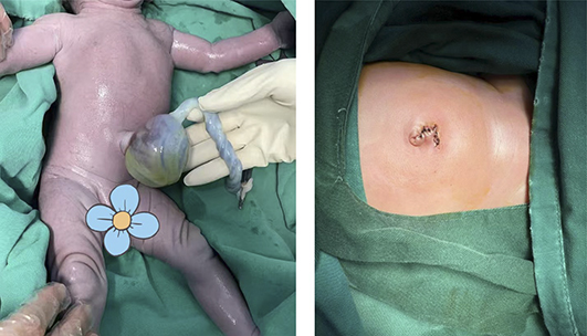 臍膨出是一種嚴重的先天性腹壁發(fā)育缺陷,表現(xiàn)為患兒臍部有一凸出的囊狀物,內(nèi)容物為腸管等腹腔器官,如不及時治療可能引發(fā)囊膜破裂后腹腔器官脫出,造成壞死、感染,危及患兒生命。產(chǎn)科、小兒外科、新生兒科、超聲科等多學(xué)科團隊在產(chǎn)前就對胎兒進行定期監(jiān)測和指導(dǎo),動態(tài)評估胎兒情況的同時,安撫減輕家屬的焦慮。該例患兒的成功救治充分展現(xiàn)了醫(yī)院近年來開展胎兒結(jié)構(gòu)畸形多學(xué)科一體化診療的技術(shù)實力。