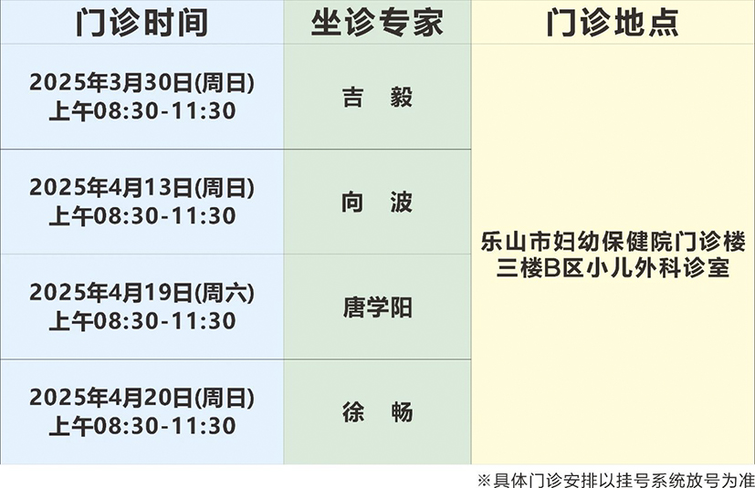 現(xiàn)在,華西小兒外科專家團隊已入駐樂山市婦幼保健院!每周末,華西小兒外科專家輪流坐診,家長們再也不用擔心來回奔波,小朋友們也可以不出樂山就能享受到華西頂尖專家的診療服務(wù)。