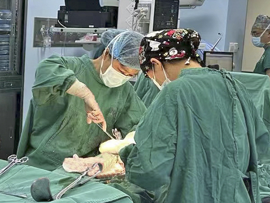 2023年5月25日早上08:16,大家正在為即將開始一天忙碌的工作做準(zhǔn)備,樂山市婦幼保健院急診科電話鈴聲焦急的響起。一位36周+6天、臀位的孕婦向醫(yī)務(wù)人員求助,胎膜早破,羊水不停的流出來,她及家人不知所措。產(chǎn)科急診醫(yī)師汪潔剛到醫(yī)院,立馬叫上助產(chǎn)士,火速出診,路上通過保持通話安慰并指導(dǎo)孕婦平躺用枕頭把臀部抬高。順利到達(dá)孕婦家中經(jīng)初步檢查,孕婦臀位、胎膜已破、羊水清亮、胎心正常、宮口開大4+cm,并于陰道內(nèi)捫及胎兒的雙足露于宮頸外口?!霸愀狻阆嚷丁?,汪潔醫(yī)生心里咯噔一下,一邊指揮大家迅速轉(zhuǎn)移產(chǎn)婦,一邊給科主任匯報(bào)。因小區(qū)電梯小,擔(dān)架不能進(jìn)入,往日弱小的女醫(yī)生、護(hù)士們,拿出全身力氣,與家屬合力將孕婦抬入電梯,平穩(wěn)送上救護(hù)車。喻云倩主任接到電話后高度重視,立即聯(lián)系產(chǎn)科、麻醉科及新生兒當(dāng)班醫(yī)生,讓大家立刻前往手術(shù)室待命,做好剖宮產(chǎn)及新生兒搶救的各項(xiàng)準(zhǔn)備。孕婦到達(dá)醫(yī)院后立即通過綠色通道,直接進(jìn)入手術(shù)室,因孕婦一直在我院產(chǎn)前檢查,院內(nèi)留存孕婦全套產(chǎn)前檢查資料,早已守候的醫(yī)務(wù)人員,在充分準(zhǔn)備下,順利為孕婦進(jìn)行了剖宮產(chǎn)手術(shù),伴隨新生兒第一聲洪亮的啼哭,在場(chǎng)的醫(yī)務(wù)人員終于松了一口氣。