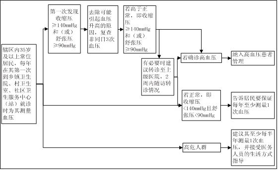 1.對轄區(qū)內(nèi)35歲及以上常住居民,每年在其第一次到鄉(xiāng)鎮(zhèn)衛(wèi)生院、村衛(wèi)生室、社區(qū)衛(wèi)生服務(wù)中心(站)就診時為其測量血壓。