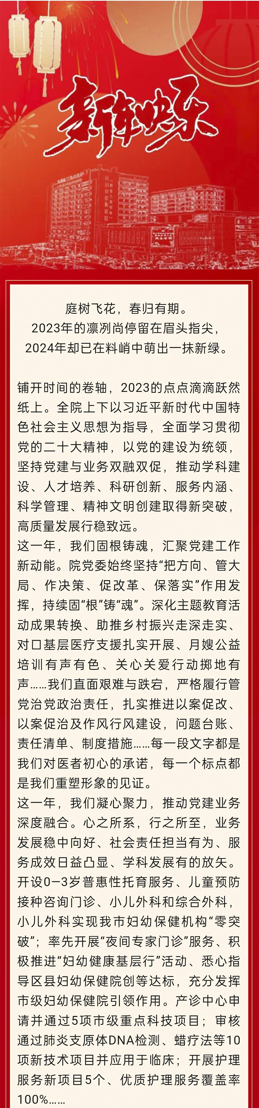 奮楫爭先 與光同行——樂山市婦幼保健院2024年新春賀詞